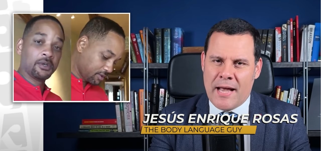 해외 지체언어전문가 Jesús Enrique Rosas 는 해당영상에서 윌스미스는 여러가지 신호를 보여주고 있다고 했습니다 .