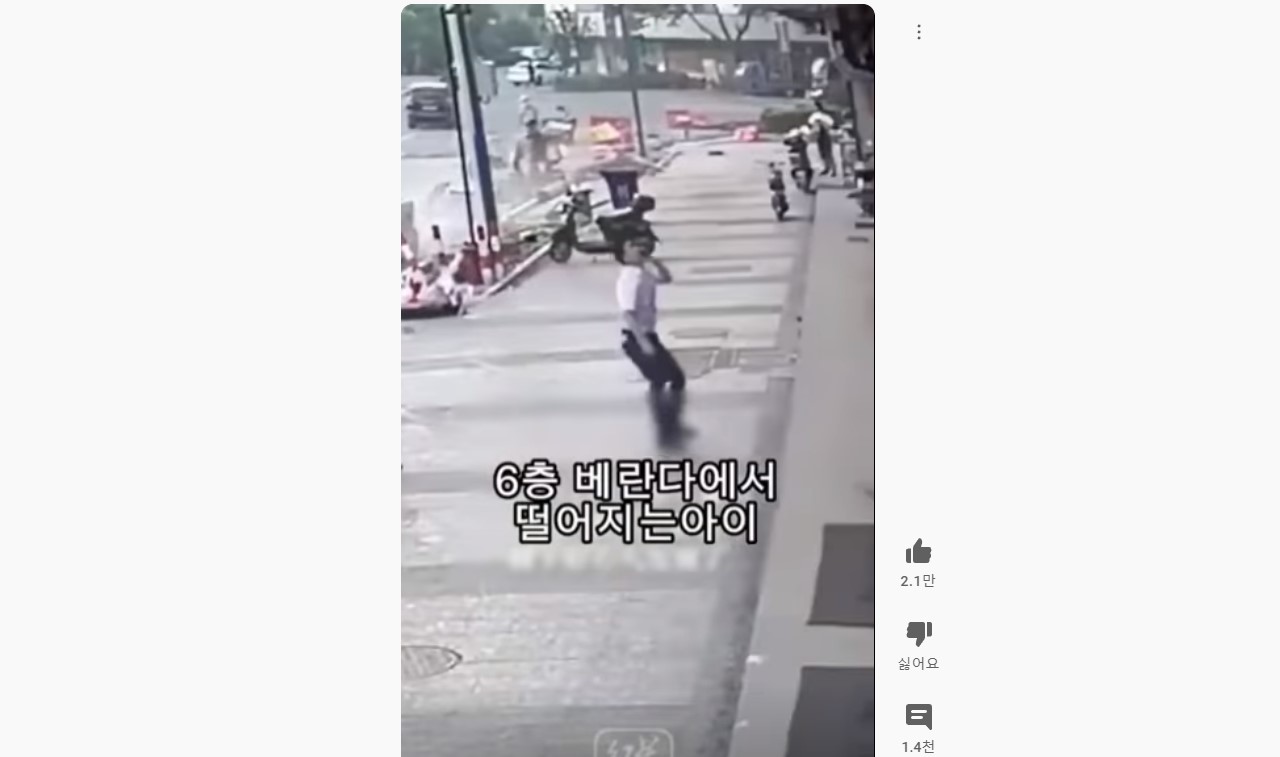 2022년 7월 19일 중국절강성 모 주택을 지나가던 은행원 심둥씨는 한 여자아이가 베란다에 매달려 있는 모습을 발견하였습니다. 이후 그는 곧바로 120(119)에 전화를 걸었는데요 . 하지만 여자아이는 힘이 빠져 그만 추락하고 말았습니다 .